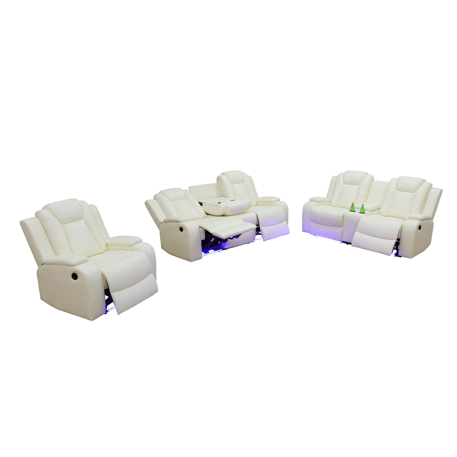 White Breathing Leather 3-Piece Living Room Recliner Sofa Set